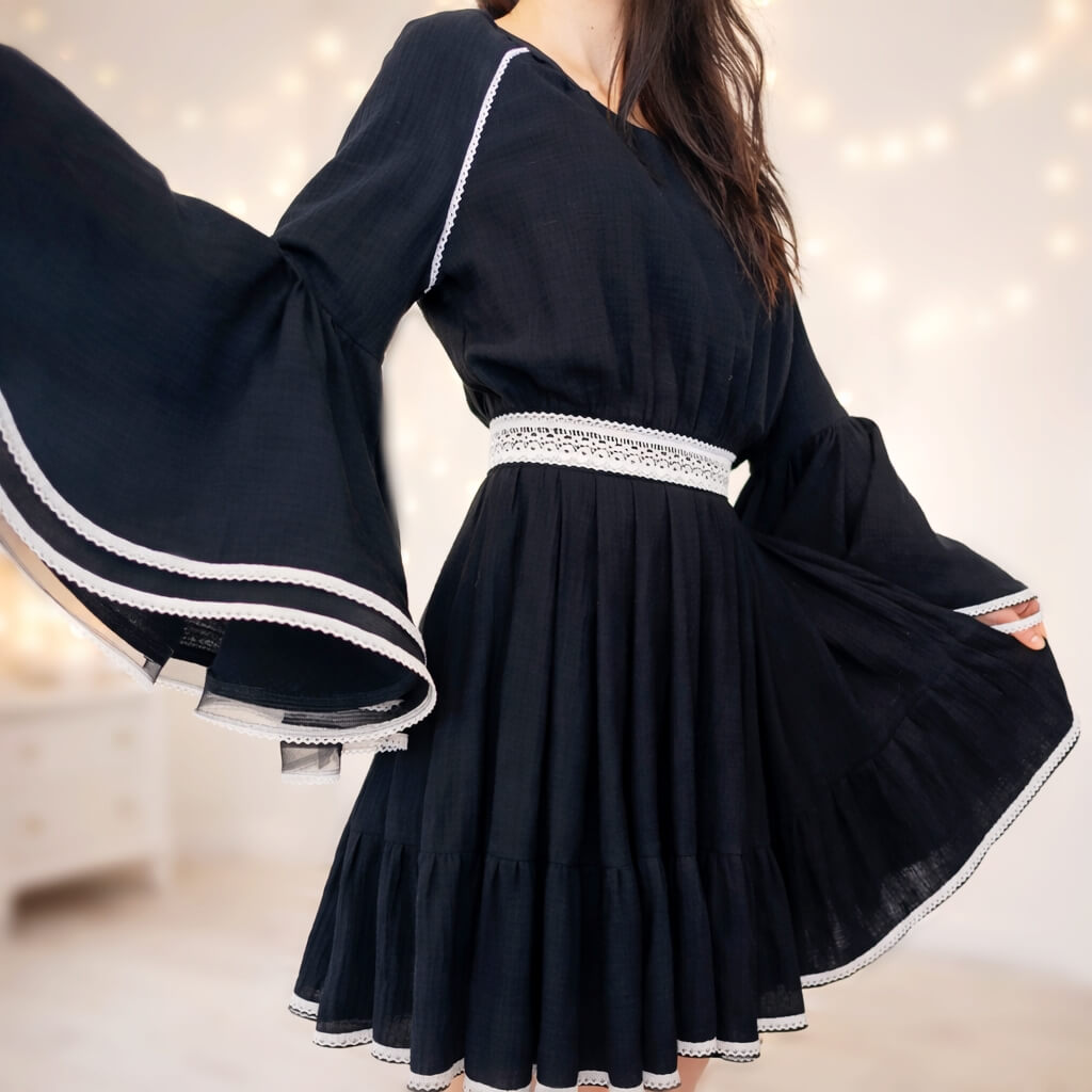 Rochie bumbac și mâneci evazate