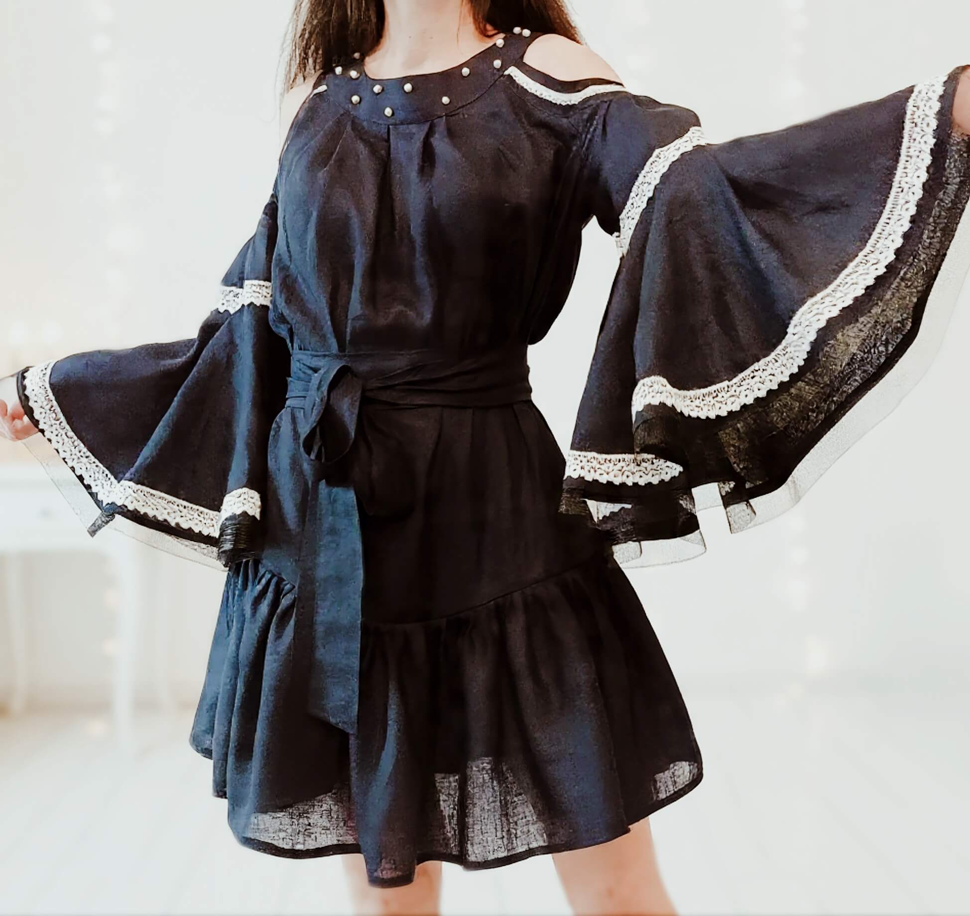 Fii primul care adaugi o recenzie la „Rochie umeri decupați și mâneci evazate”